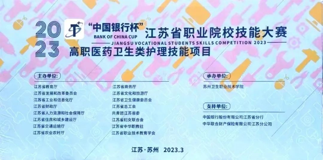 由江蘇省教育廳、江蘇省發(fā)改委等16個部門共同主辦,蘇州衛(wèi)生職業(yè)技術學院承辦,2023年“中國銀行杯”江蘇省職業(yè)院校技能大賽高職醫(yī)藥衛(wèi)生類護理技能項目于3月5日順利閉幕!技能大賽的成功舉辦對于推進新時代職業(yè)教育服務技能型社會發(fā)揮了積極作用。