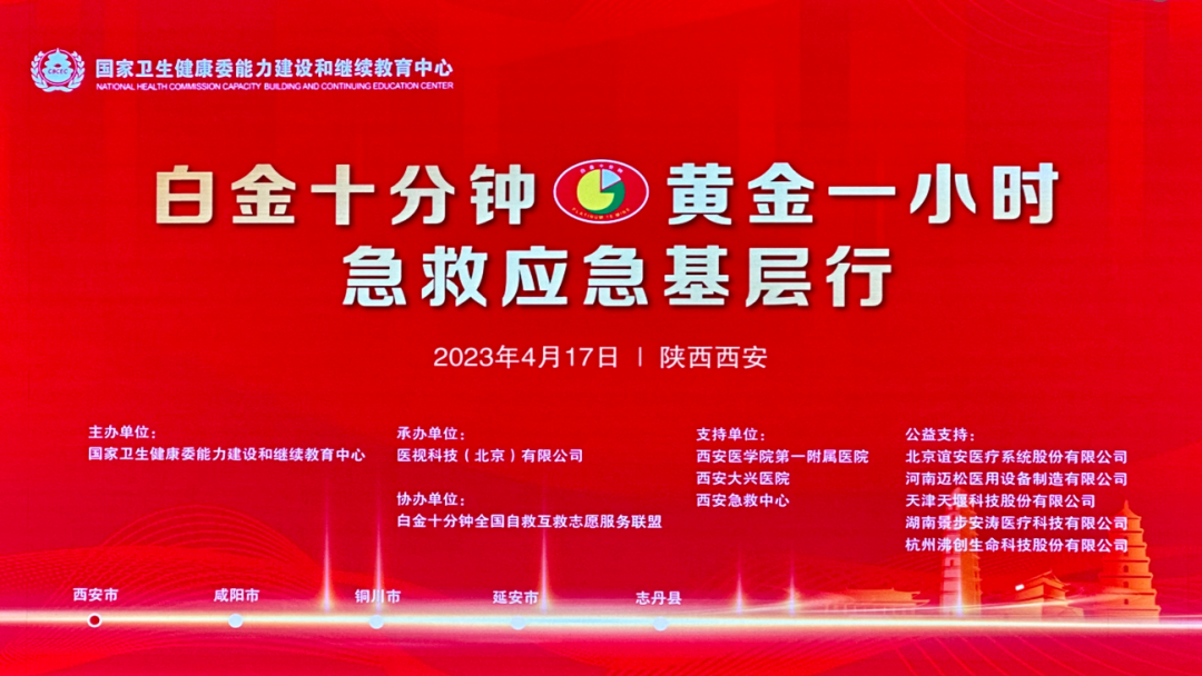 為進一步提高院前院內(nèi)急診救治水平,促進院前急救體系健康有序發(fā)展,搭建學(xué)術(shù)交流平臺,4月17-21日,由國家衛(wèi)生健康委能力建設(shè)和繼續(xù)教育中心主辦的“白金十分鐘,黃金一小時”急救應(yīng)急基層行陜西試點培訓(xùn)活動在西安站啟動,途徑咸陽—銅川—延安,在中國革命的“紅都”志丹縣圓滿結(jié)束。