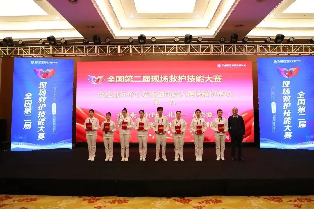 大賽根據(jù)選手們的賽場表現(xiàn)分別評選出了“雙人徒手心肺復蘇現(xiàn)場救護與管理”賽項、“穿脫防護服和采集鼻咽拭子”賽項、“突發(fā)意外單個危重創(chuàng)傷病人現(xiàn)場救護”賽項一二三等獎,團體一二三等獎,優(yōu)秀指導教師獎項。