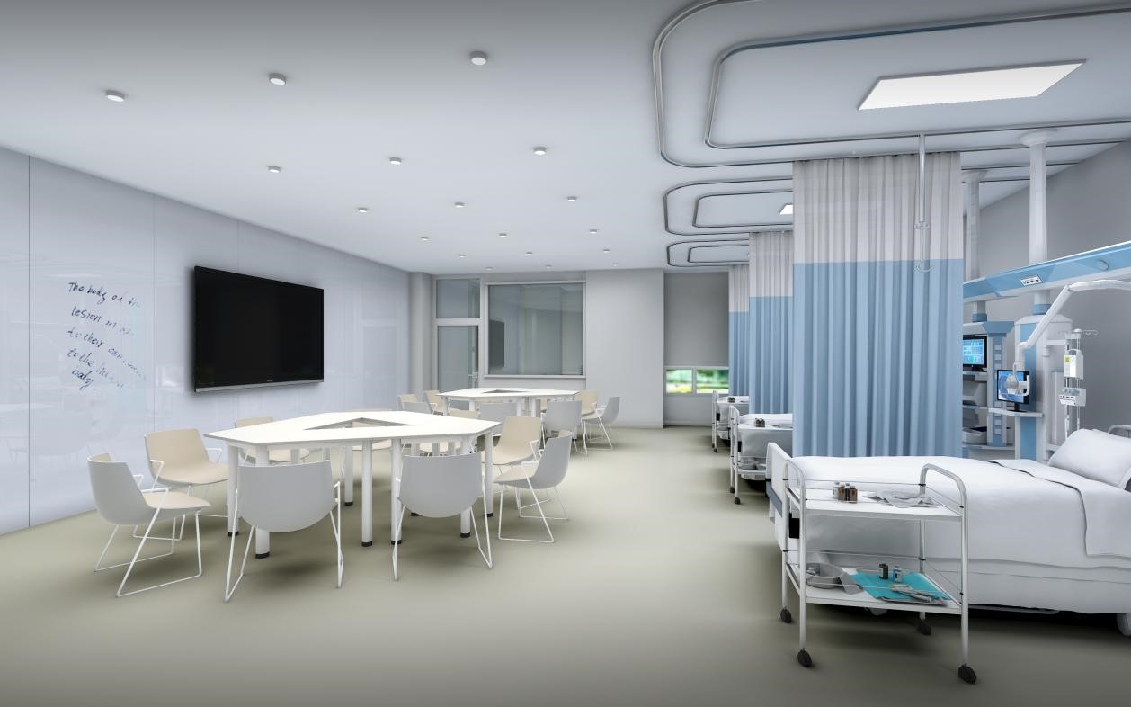 地下一層考試中心30站和中控室及配套用房,是目前單體量較大的智能化OSCE考試中心;地上一層設置應急處置中心、急救技能實訓室、模擬ICU、觀摩室、婦兒技能實訓室和外科技能實訓室。現(xiàn)實訓中心已經(jīng)正式運營并多次舉辦臨床技能考核,其中圓滿承接了2021年第十屆全國大學生醫(yī)學技能競賽。